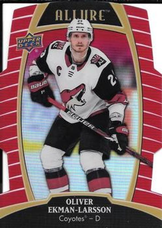 The Oliver Ekman-Larsson 2019 Upper Deck Allure #47 Red Rainbow card is 1 of 17 Oliver Ekman-Larsson's card variations in the 2019 Upper Deck Allure set being tracked by Sports Card Investor, including Base, Pewter, White Rainbow, Yellow Taxi, and Orange Slice /199.