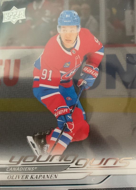 This card is 1 of 8 Oliver Kapanen's card variations in the 2024 Upper Deck set being tracked by Sports Card Investor, including Young Guns Base, Young Guns - Outburst Silver, Young Guns - Deluxe /250, Young Guns - UD Exclusives /100, and Young Guns - Outburst Red /25.