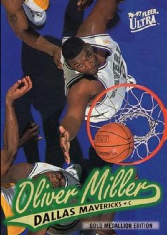 The Oliver Miller 1996 Fleer Ultra #G-171 Gold Medallion card is 1 of 3 Oliver Miller's card variations in the 1996 Fleer Ultra set being tracked by Sports Card Investor, including Base, and Platinum Medallion.