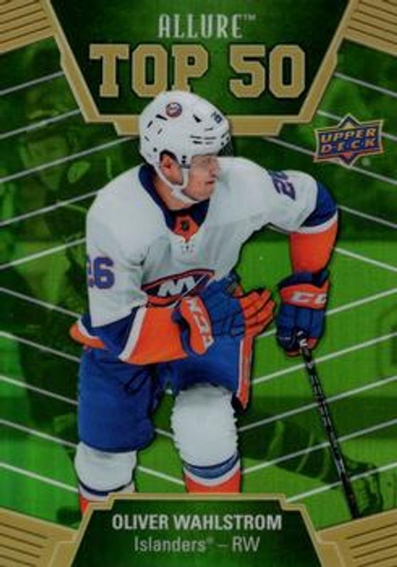 Oliver Wahlstrom 2019 Upper Deck Allure #T50-32 Top 50 Green /50 Rookie RAW Price Guide