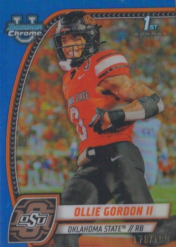 2024 Bowman University Chrome Ollie Gordon II Blue Refractor #/199 #197 Card