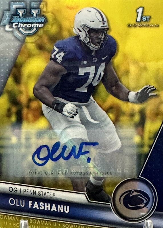 Olu Fashanu 2023 Bowman Chrome U Yellow Auto 75/75 Penn State 1st