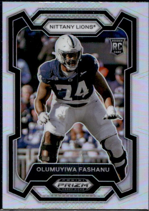 The Olu Fashanu 2024 Prizm Draft Picks #145 Silver Rookie card is 1 of 79 Olu Fashanu's card variations in the 2024 Prizm Draft Picks set being tracked by Sports Card Investor, including Base, Green, Purple Wave, Red Ice, and Ruby Wave.