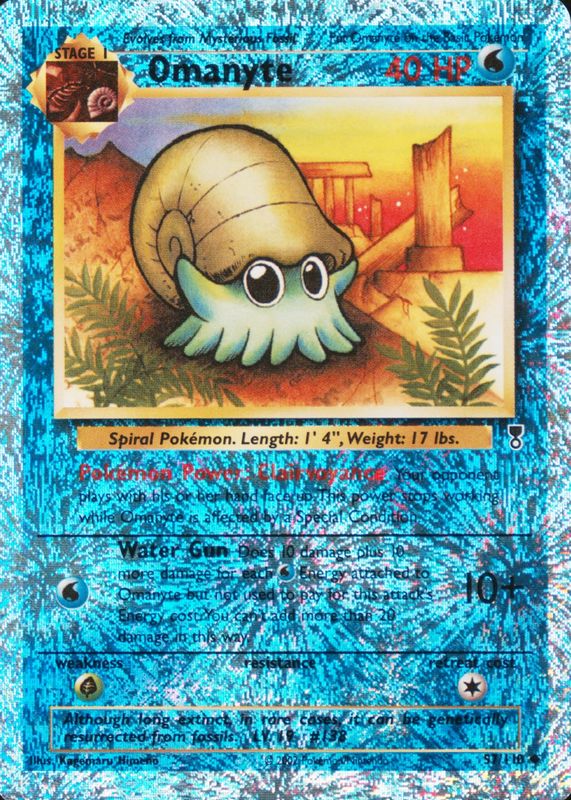 This card is 1 of 2 Omanyte's card variations in the 2002 Legendary Collection set being tracked by Sports Card Investor, including Base.
