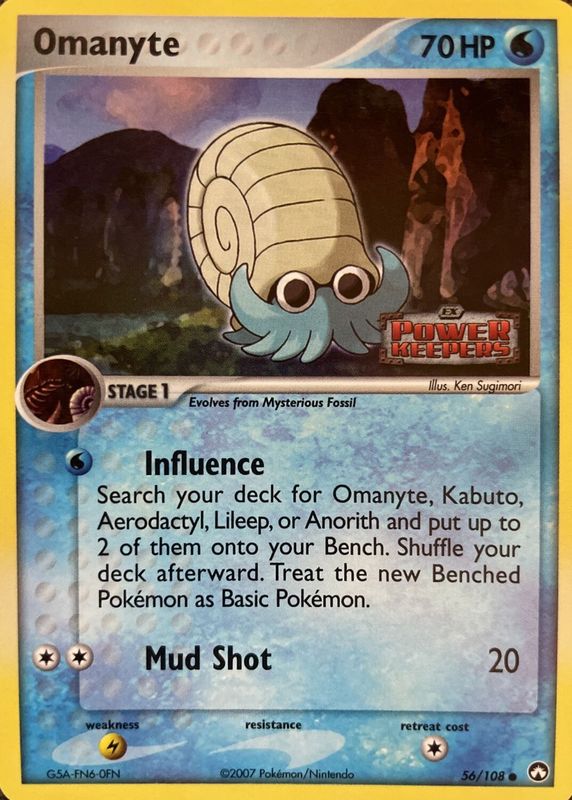 The Omanyte 2007 EX: Power Keepers #056/108 Reverse Holo card in Raw TCG (Near Mint) condition has moved up $1.50 (+17.7%) in the last 30 days and was last sold for $9.99 .