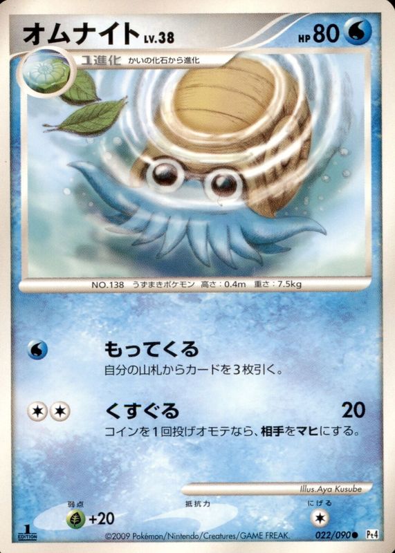 The Omanyte 2009 Japanese Platinum: Advent of Arceus #022/090 1st Edition card in Raw TCG (Near Mint) condition has not changed in price in the last 30 days and was last sold for $4.75 .