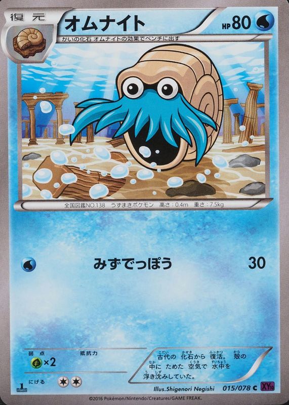 The Omanyte 2016 Japanese XY: Awakening Psychic King #015/078 1st Edition card in Raw TCG (Near Mint) condition has not changed in price in the last 30 days and was last sold for $2.40 .