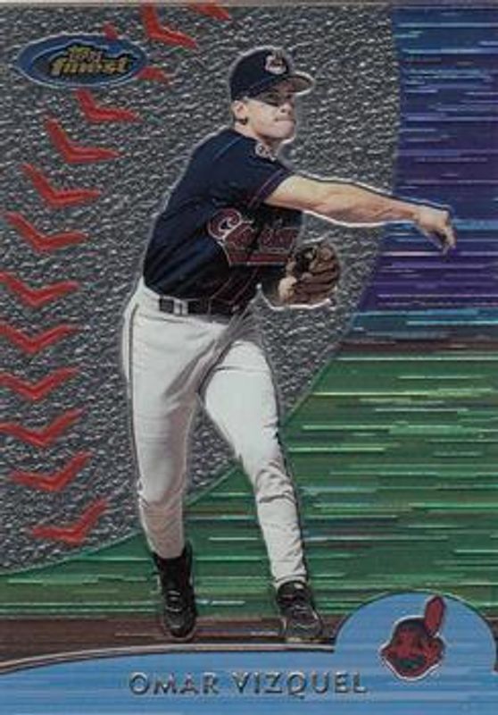 The Omar Vizquel 2000 Topps Finest #214 Base card is 1 of 3 Omar Vizquel's card variations in the 2000 Topps Finest set being tracked by Sports Card Investor, including Gold Refractor /100, and Refractor /1000.