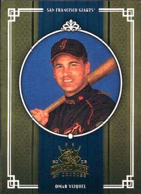 The Omar Vizquel 2005 Diamond Kings #389 Base card is 1 of 121 Omar Vizquel's card variations in the 2005 Diamond Kings set being tracked by Sports Card Investor, including #78 Base, #78 Black & White, #389 Framed Red, #78 Framed Red, and #78 Framed Red Black & White.