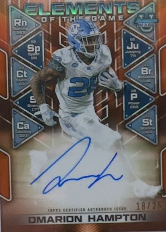 Best Prices Available For Sale of Omarion Hampton 2024 Bowman Best University #BOA-OH Best of 2024 Autographs - Orange Refractor /25