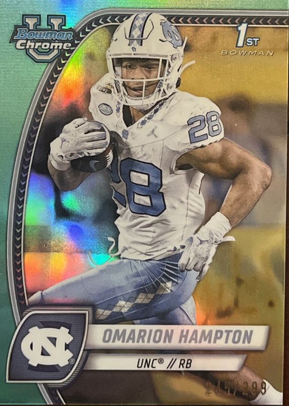 2024 Bowman University Chrome Omarion Hampton 1st RC Aqua Refractor /299 UNC NFL