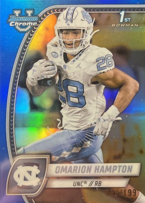2024 Bowman Chrome University Blue Refractor Omarion Hampton /199 #198 UNC NFL
