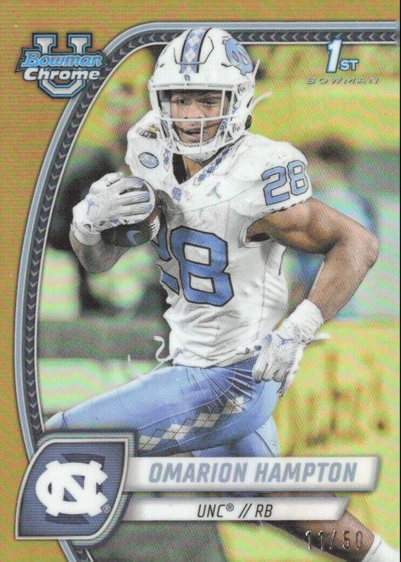 2024 Bowman University Chrome Omarion Hampton Gold /50 #198 Ssp 1st Bowman