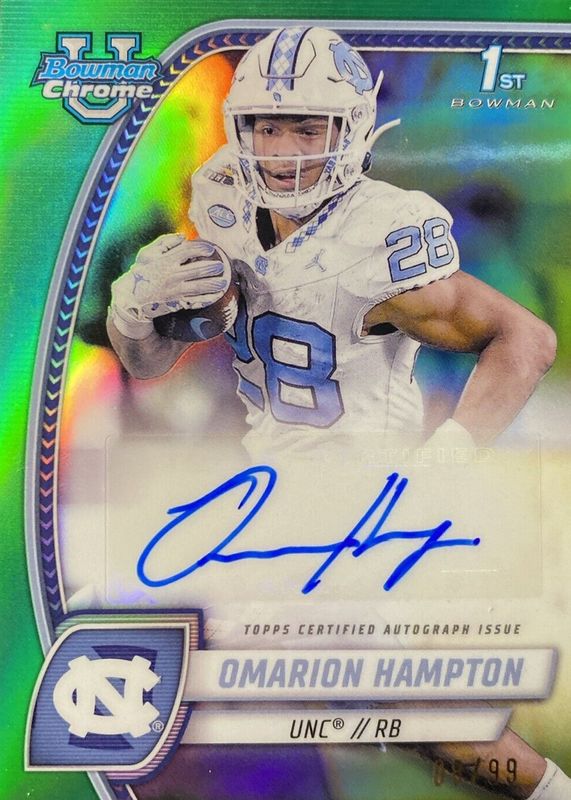 /99 SP 2024 Bowman University Chrome Omarion Hampton Autographs Green Refractor