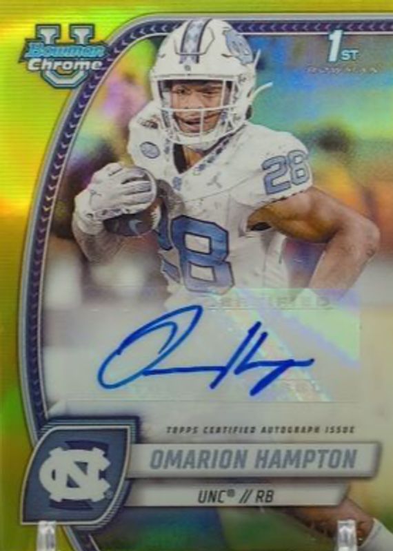 2024 Bowman Chrome University Football Omarion Hampton 1st Yellow Auto /75