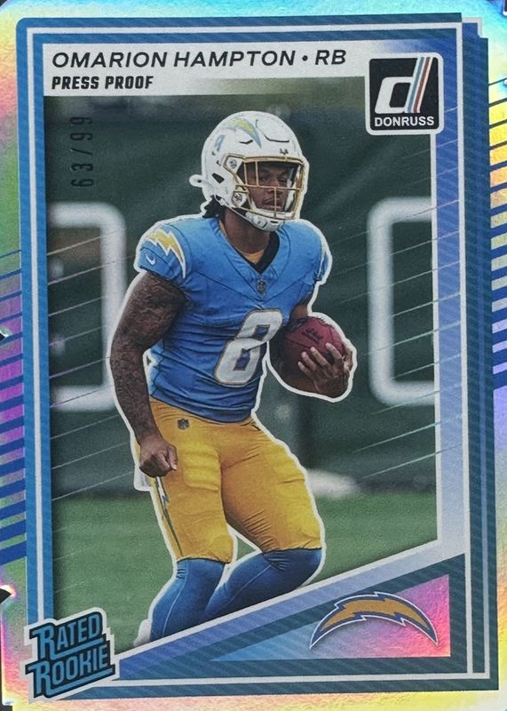 2025 Donruss OMARION HAMPTON Press Proof Rated Rookie Silver Die Cut /99. (F156)