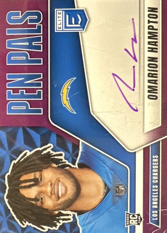 2025 Donruss Elite Pen Pals Auto RC Purple Ink Omarion Hampton SSP Chargers