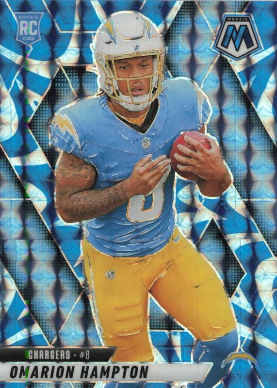 2025 Panini Mosaic Reactive Blue Omarion Hampton RC #335 Los Angeles Chargers