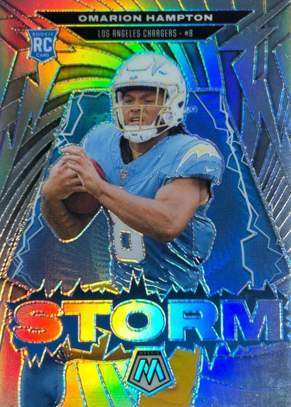 OMARION HAMPTON 2025 MOSAIC STORM ROOKIE SILVER MOSAIC CHARGERS RC Q3615