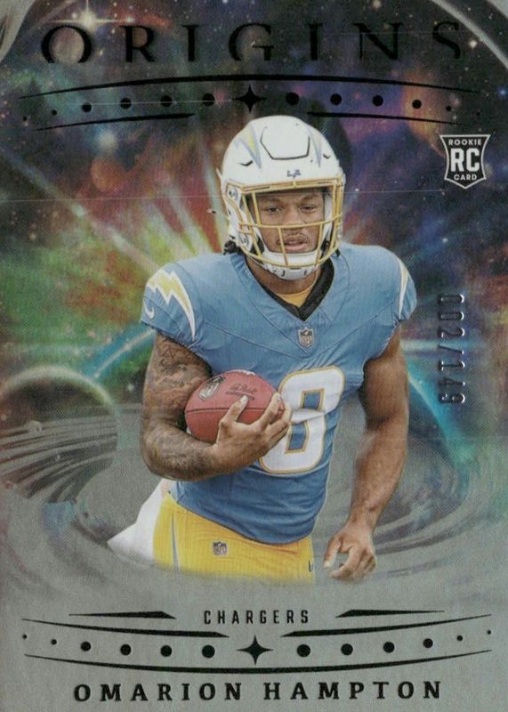 2025 Panini Origins 134 Omarion Hampton Holo Silver #/149 Los Angeles Chargers