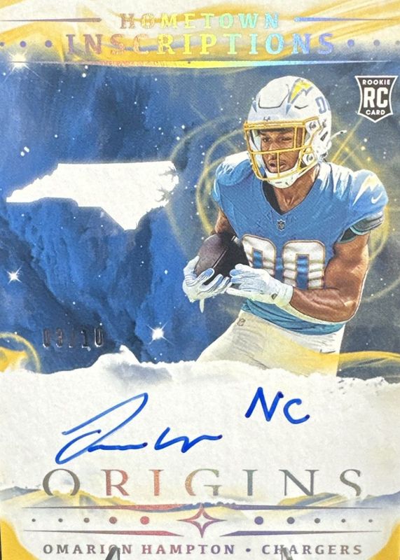 Omarion Hampton 2025 Origins #HI-9 Hometown Inscriptions - Gold /10 Rookie RAW Price Guide