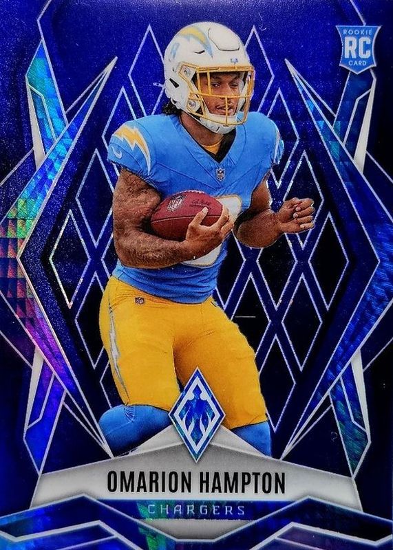 The Omarion Hampton 2025 Phoenix #192 Blue Hyper /199 Rookie card in Raw condition has moved down -$2.25 (-31.0%) in the last 30 days and was last sold for $5.00 .