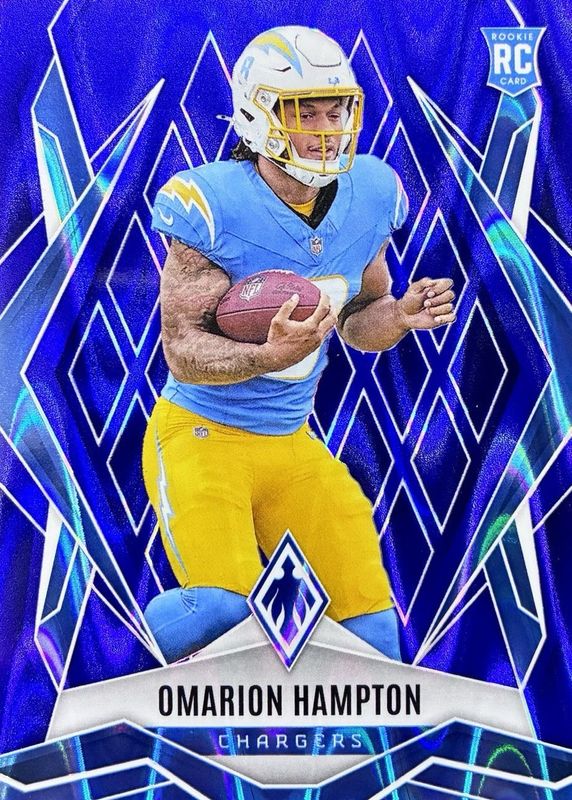 The Omarion Hampton 2025 Phoenix #192 Blue Seismic /35 Rookie card in Raw condition has not changed in price in the last 30 days and was last sold for $22.50 .