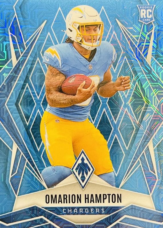 The Omarion Hampton 2025 Phoenix #192 Light Blue Mojo /85 Rookie card in Raw condition has moved down -$8.00 (-36.4%) in the last 30 days and was last sold for $14.00 .
