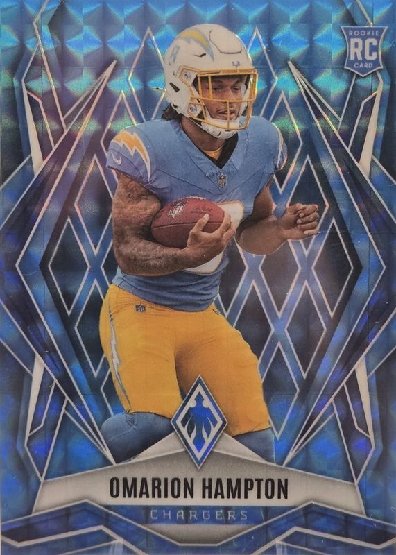 2025 Panini Phoenix Blue Pyramids Rookie Omarion Hampton #192 Chargers /385