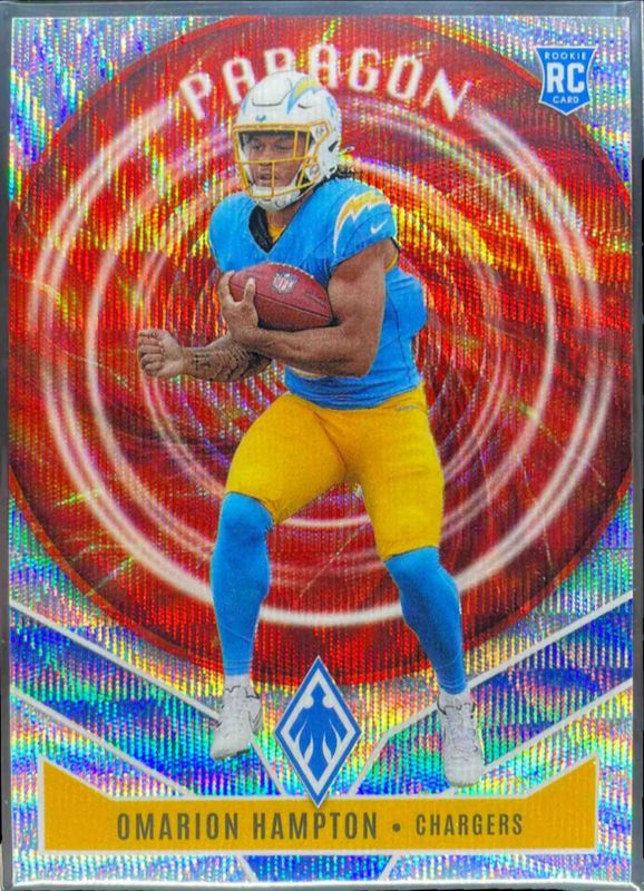 The Omarion Hampton 2025 Phoenix #9 Paragon - Wave /299 Rookie card is 1 of 231 Omarion Hampton's card variations in the 2025 Phoenix set being tracked by Sports Card Investor, including Base, Silver, Silver Hyper, Silver Lava, and Silver Lazer.