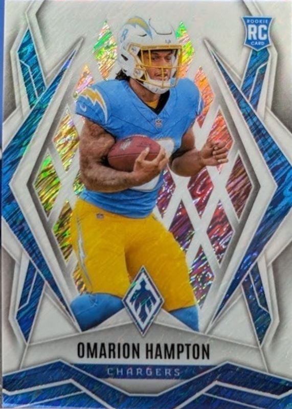 The Omarion Hampton 2025 Phoenix #192 White Shimmer /(SSP) Rookie card in Raw condition has not changed in price in the last 30 days and was last sold for $10.50 .