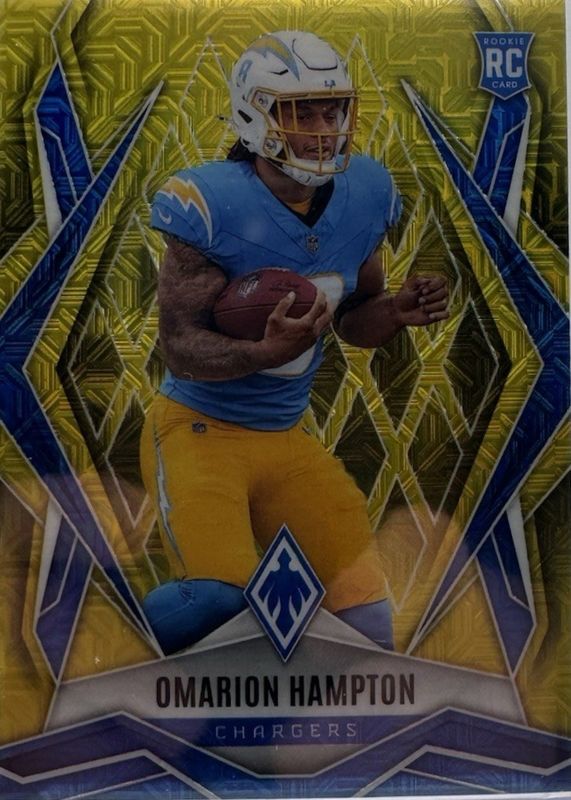 The Omarion Hampton 2025 Phoenix #192 Yellow Mojo /35 Rookie card in Raw condition has not changed in price in the last 30 days and was last sold for $25.00 .