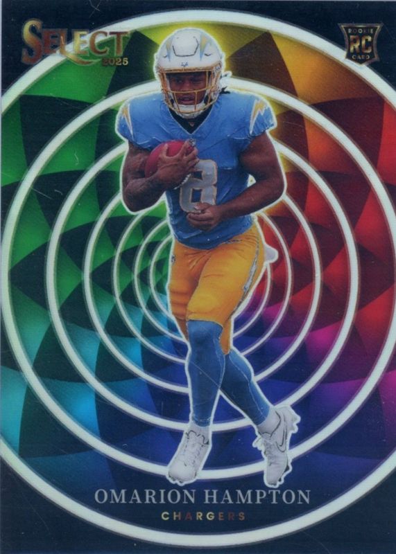 The Omarion Hampton 2025 Select #14 Color Wheel /(SSP) Rookie card in Raw condition has moved down -$39.99 (-26.7%) in the last 30 days and was last sold for $110.00 .