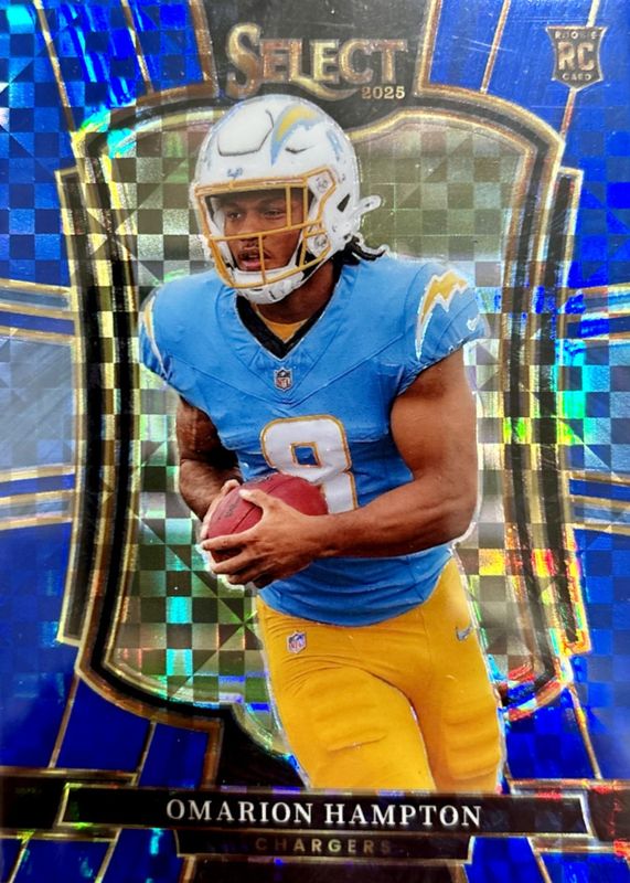 OMARION HAMPTON 2025 SELECT PREMIER LEVEL ROOKIE BLUE CHECKER RC /175