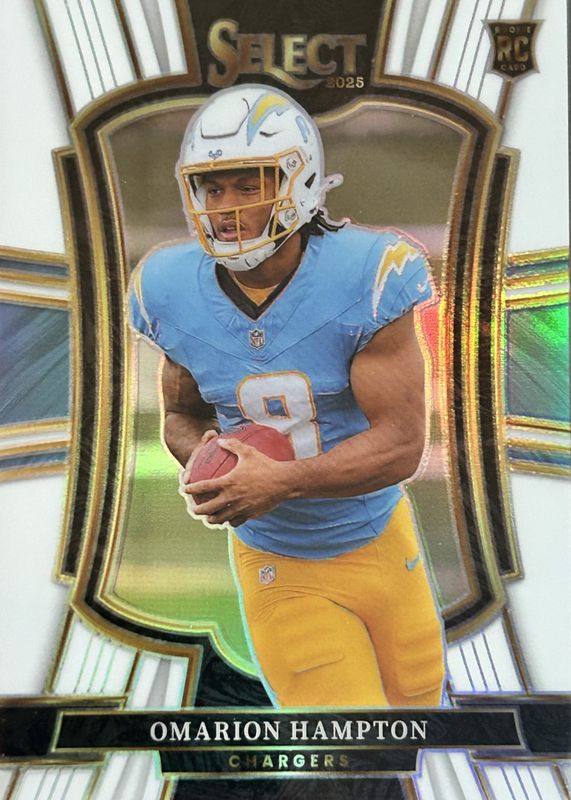 The Omarion Hampton 2025 Select #102 Premier Level White /35 Rookie card in Raw condition has not changed in price in the last 30 days and was last sold for $37.00 .