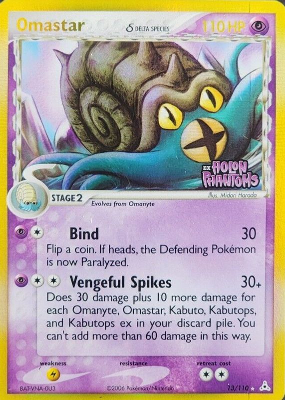 Omastar 13/110 Holon Phantoms Delta Species Reverse Holo Rare NM Pokemon Card