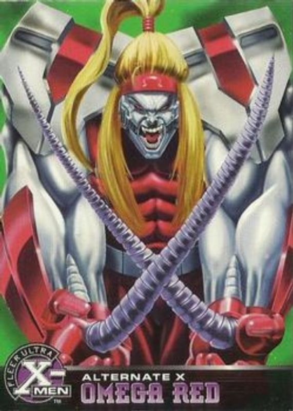 The Omega Red 1995 Fleer Ultra X-Men Chromium #15 Alternate X card is 1 of 4 Omega Red's card variations in the 1995 Fleer Ultra X-Men Chromium set being tracked by Sports Card Investor, including Base, Gold Signatures, and Lethal Weapons.