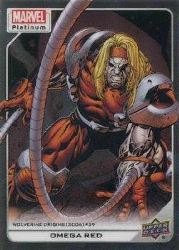 The Omega Red 2023 Upper Deck Marvel Platinum #200 Base card is 1 of 30 Omega Red's card variations in the 2023 Upper Deck Marvel Platinum set being tracked by Sports Card Investor, including Black Rainbow, Blue Rainbow, Blue Surge, Purple Rainbow, and Rainbow.