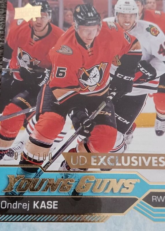 The Ondrej Kase 2016 Upper Deck #489 Young Guns - UD Exclusives /100 Rookie card in Raw condition has not changed in price in the last 30 days and was last sold for $14.63 .