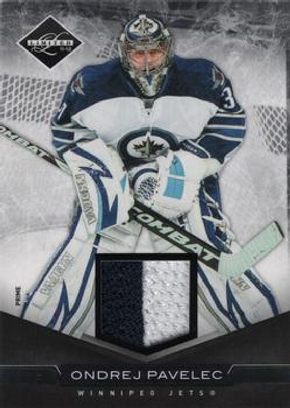 The Ondrej Pavelec 2011 Limited #198 Materials Prime /25 card is 1 of 15 Ondrej Pavelec's card variations in the 2011 Limited set being tracked by Sports Card Investor, including Base /299, Ruby Spotlight /49, Gold Spotlight /10, Materials /10, and Monikers Platinum /1.