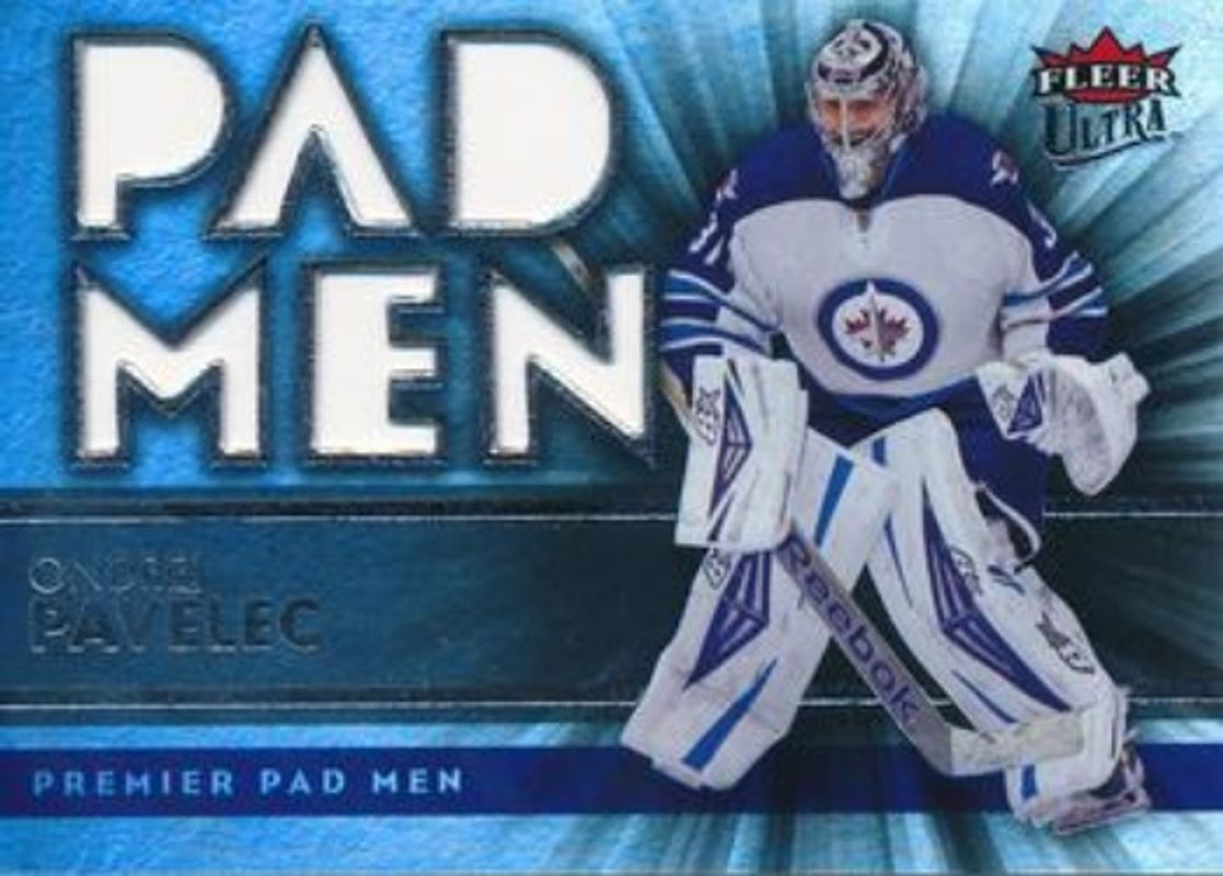 The Ondrej Pavelec 2014 Fleer Ultra #PP-29 Premier Pad Men card is 1 of 5 Ondrej Pavelec's card variations in the 2014 Fleer Ultra set being tracked by Sports Card Investor, including Base, Gold Medallion, Platinum Medallion /25, and Violet /1.