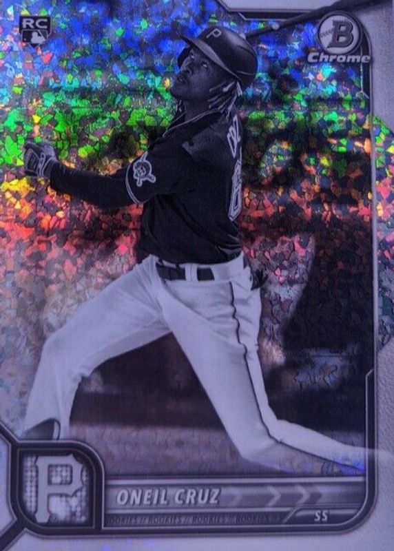 This card is 1 of 22 Oneil Cruz's card variations in the 2022 Bowman Chrome set being tracked by Sports Card Investor, including Base, Refractor /499, Fuchsia Refractor /299, Purple Refractor /250, and Aqua RayWave Refractor /199.