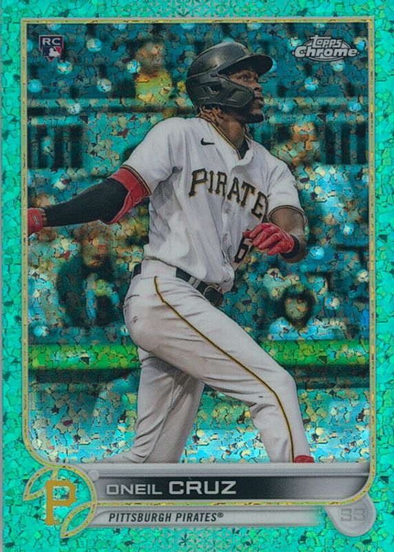 This card is 1 of 41 Oneil Cruz's card variations in the 2022 Topps Chrome set being tracked by Sports Card Investor, including Base, Black & White Mini-Diamond Refractor, Negative Refractor, Pink Refractor, and Prism Refractor.