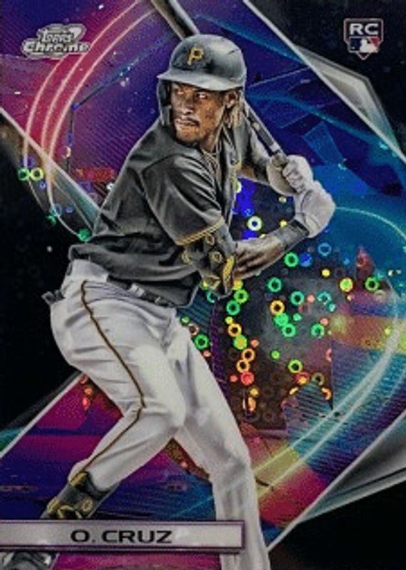 This card is 1 of 9 Oneil Cruz's card variations in the 2022 Topps Chrome Cosmic set being tracked by Sports Card Investor, including Base, Nucleus Refractor, Refractor, Blue Moon Refractor /99, and Gold Interstellar Refractor /50.