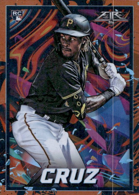 This card is 1 of 10 Oneil Cruz's card variations in the 2022 Topps Fire set being tracked by Sports Card Investor, including Base, Flame, Gold Minted, Green /199, and Purple /99.