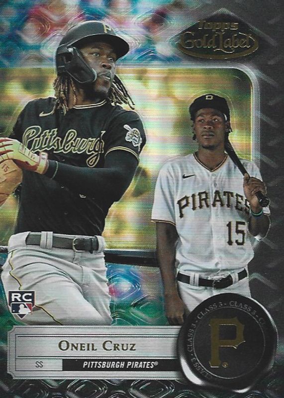 This card is 1 of 15 Oneil Cruz's card variations in the 2022 Topps Gold Label set being tracked by Sports Card Investor, including Class 1, Class 1 - Black, Class 1 - Blue /150, Class 1 - Purple /99, and Class 1 - Red /75.