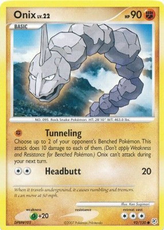 Onix 2007 Diamond & Pearl #092/130 Base RAW TCG (LIGHTLY PLAYED) Price Guide