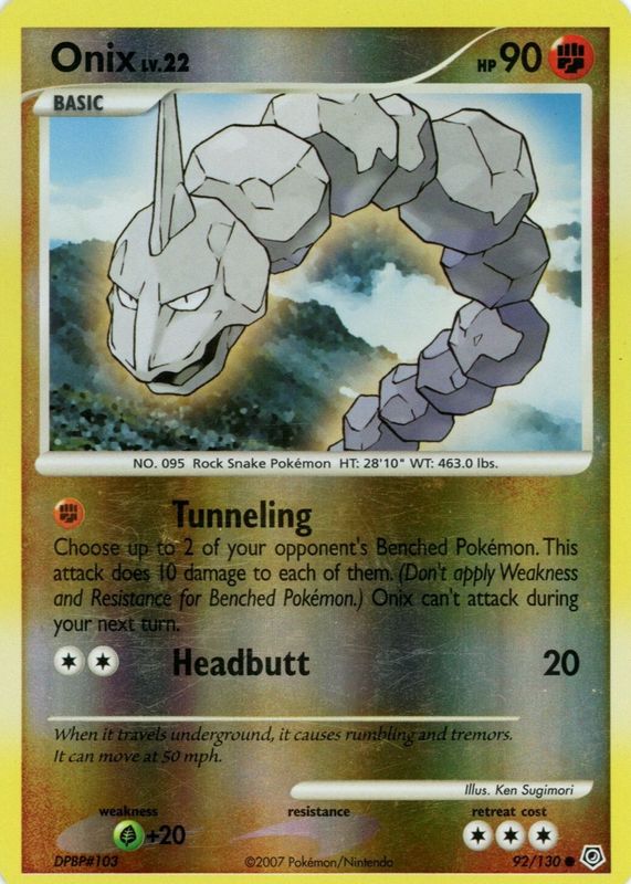 Onix 2007 Diamond & Pearl #092/130 Reverse Holo RAW TCG (LIGHTLY PLAYED) Price Guide
