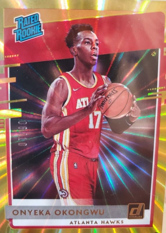 The Onyeka Okongwu 2020 Donruss #228 Red & Gold Laser Rookie card in Raw condition has not changed in price in the last 30 days and was last sold for $30.00 .
