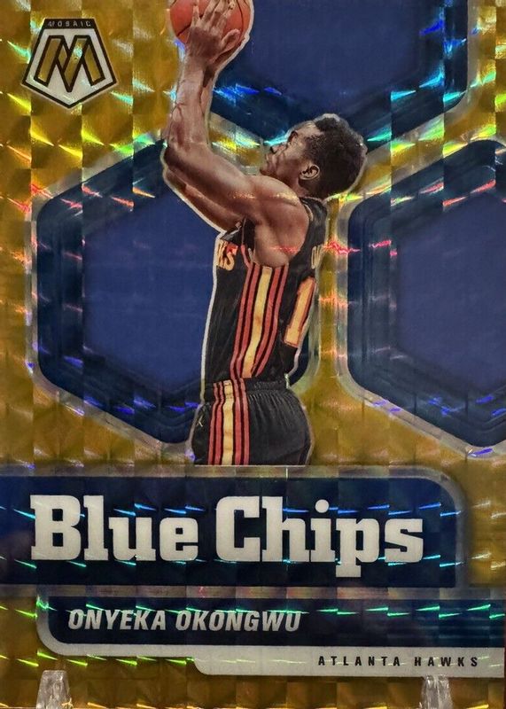 The Onyeka Okongwu 2020 Mosaic #1 Blue Chips - Gold /10 Rookie card in Raw condition has not changed in price in the last 30 days and was last sold for $19.19 .